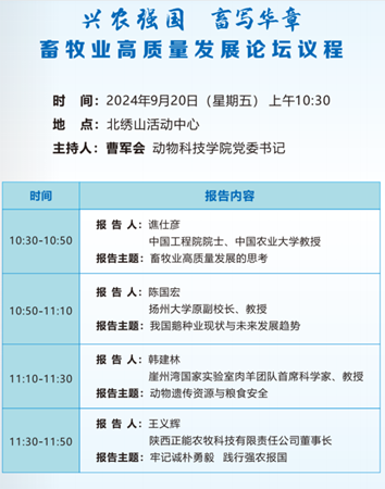 动物科技学院将于9月20日在北绣山活动中心举办畜牧业高质量发展论坛,现将具体安排通知如下。