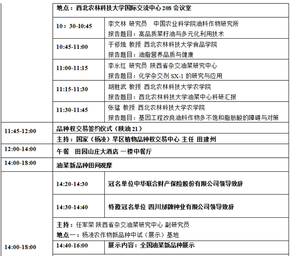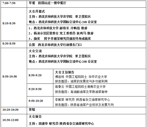 学术活动 您现在的位置: 首页 - 学术活动 2019年首届全国(杨凌)油菜科技大会暨全国冬油菜新品种观摩展示交易会 日程安排 上传时间: 2019-05-18 浏览次数: 2019年5月19日 星期日 2019年5月20日 星期一 编辑:0 终审:0 下一篇:马博(中国)举办加拿大UBC大学张跃林与李昕教授报告会的通知 分享到: